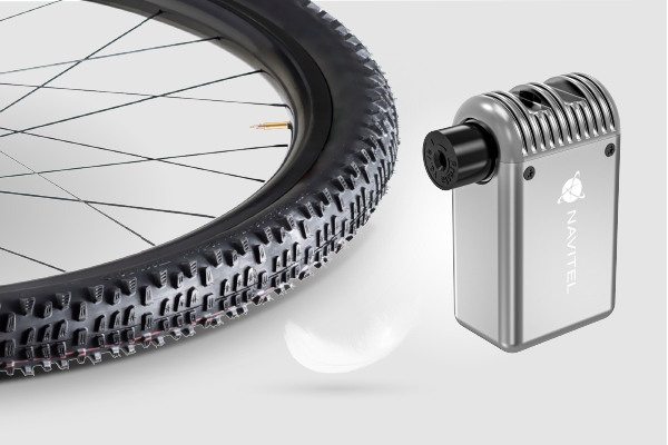 NAVITEL AIR8 MINI is a compact compressor that allows to inflate wheels of bicycles and scooter on the go. Its dimensions comparable to those of a phone charging adapter (70x41x28 mm) and weight of only 110g allow to put it not only in the trunk or a backpack, but also into a typical jacket’s pocket.